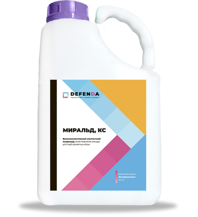 Інсектицид Міральд є високоефективним контактним акарицидом, який повністю знищує всі рухомі стадії розвитку кліща (мелікі, німфи, імаго) та проявляє високу овіцидну дію. Активна речовина у складі препарату - фенпіроксимат (50 г/л). Інсектицид доступний у формі концентрату емульсії, упакований у кан...