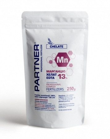 Ступінь хелатізації - 100%, вміст марганцю (Mn) - 130 г/кг. Марганець є необхідним для нормального протікання фотосинтезу, сприяючи збільшенню кількості хлорофілу в листі, синтезу цукрів і аскорбінової кислоти (вітаміну C). Він бере участь в окисно-відновних реакціях, активізуючи більше 35 ферментів...