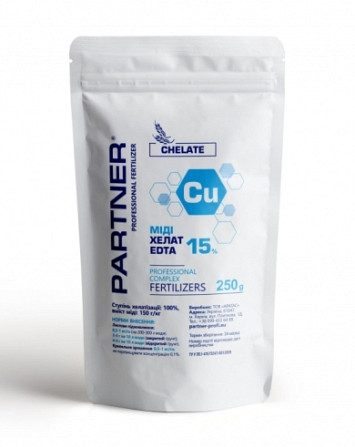 Лінія мікроелементів "Хелат". Мікроелементи Fe, Cu, Mn, Zn знаходяться у хелатній формі (EDTA) і засвоюються рослиною на 90-95%. Мікроудобрення покращують захисні властивості культур, їх стійкість до кліматичних умов та захворювань. Ступінь хелатизації 100%, вміст міді Cu - 150 г/кг. Мідь сприяє під...