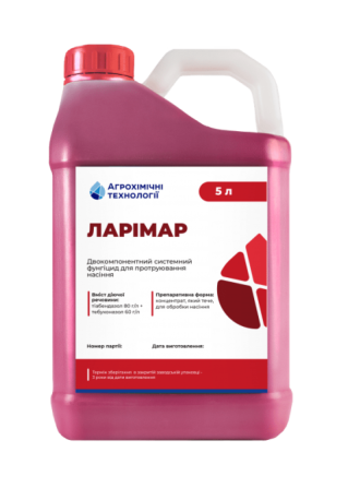 Протруйник Ларімар є високоефективним двокомпонентним системним фунгіцидом для передпосівної обробки насіння зернових культур від комплексу хвороб. Вміст діючих речовин у 1 літрі препарату складає: тіабендазол - 80 г і тебуконазол - 60 г. Препарат поставляється у формі текучого концентрату для оброб...