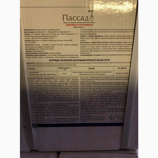 **Протруйник Пассад 190 МС для передпосівної обробки насіння зернових культур** Протруйник Пассад 190 МС є трикомпонентним системним засобом, що забезпечує потрійний захист від хвороб насіння зернових колосових культур. Діючі речовини: Тебуконазол, Тіабендазол, Флутріафол. Концентрація діючих речов...