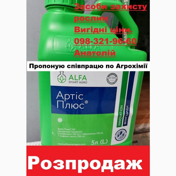 **Артіс Плюс** Призначення: Артіс Плюс - це новий трикомпонентний системно-трансламінарний фунгіцид, який призначений для інтенсивного захисту від комплексу поширених хвороб. **Склад:** - Міклобутаніл 125 г/л - Тебуконазол 125 г/л - Тіофанат-метил 250 г/л **Форма випуску:** Тара 5 л **Властивост...