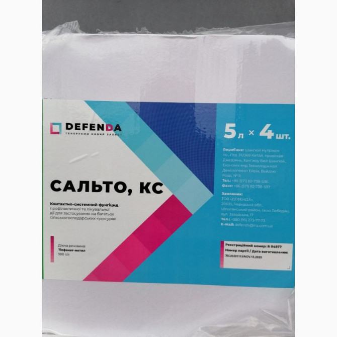 Фунгіцид Сальто є системним контактним препаратом з вираженою профілактичною та терапевтичною дією проти широкого спектру збудників фітозахворювань на більшості сільськогосподарських культур, включаючи пшеницю, соняшник, сою, цукровий буряк, капусту, виноград і яблуні. Діюча речовина - тіофанат-мети...