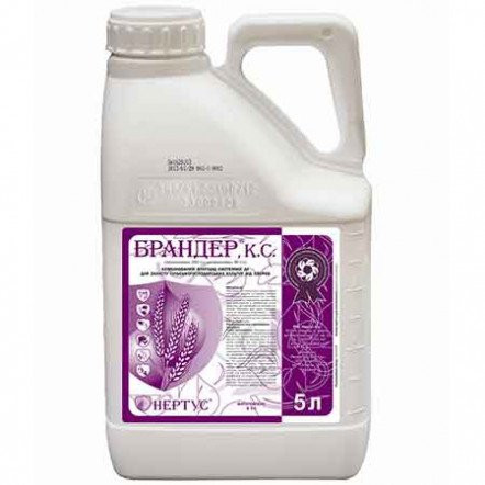 Брендер КС - фунгіцид системної дії для захисту зернових колосових культур, соняшника, сої від широкого спектру хвороб. Діюча речовина: азоксистробін - 200 г/л; тебуконазол - 160 г/л. Форма випуску: концентрат суспензії. Виробник: Нертус. Тарна одиниця: каністра, 5 л, ціна вказана за 1 л. Особливос...