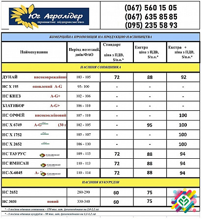 Продається насіння соняшнику для посіву. В наявності наступні сорти, які відомі своєю високою якістю та врожайністю:
