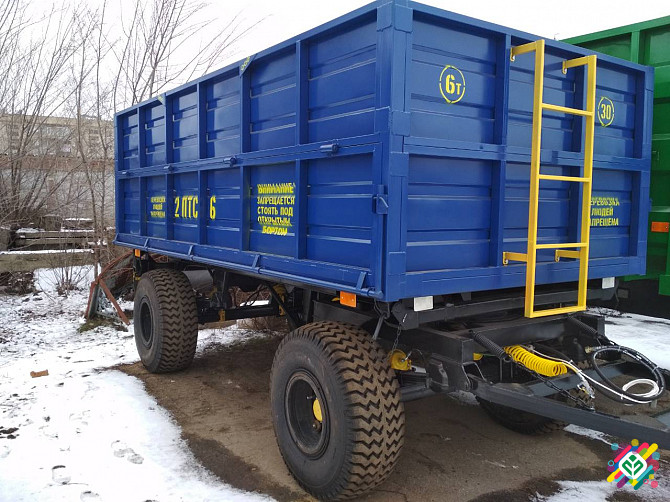 **Технічний опис прицепа тракторного самосвального 2ПТС-6** Прицеп тракторний самосвальний 2ПТС-6 є універсальним транспортним засобом, спеціально призначеним для перевезення різноманітних сільськогосподарських вантажів. **Технічні характеристики:** - Надійне та стійке підвісне обладнання. - Можли...