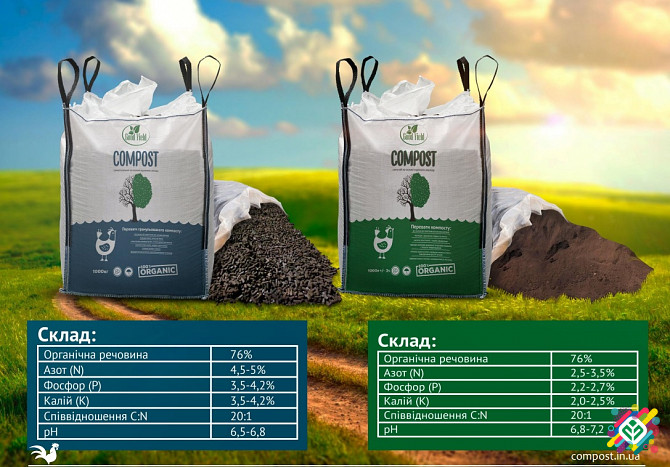 Компост є натуральним та екологічно безпечним високоякісним добривом. Виготовлений на основі курячого навозу та органічних відходів аеробним процесом з збалансованим співвідношенням мікро- та макроелементів. Компост широко використовується в садівництві, овочівництві, виноградарстві, під час вирощу...