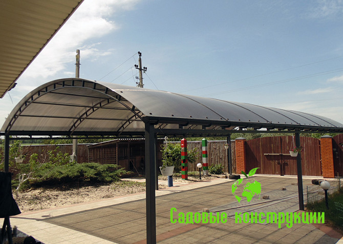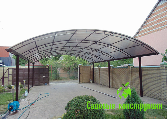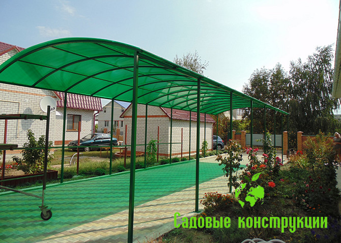 Самостійна споруда для паркування одного або кількох автомобілів. Каркас виготовлений зі сталевої труби з полімерним покриттям. Навіси доступні у стандартних розмірах: ширина арки 3 метри, 4 метри, 6 метрів; довжина 4 метри, 6 метрів, 8 метрів. Також виготовляються навіси нестандартних розмірів. Ці...