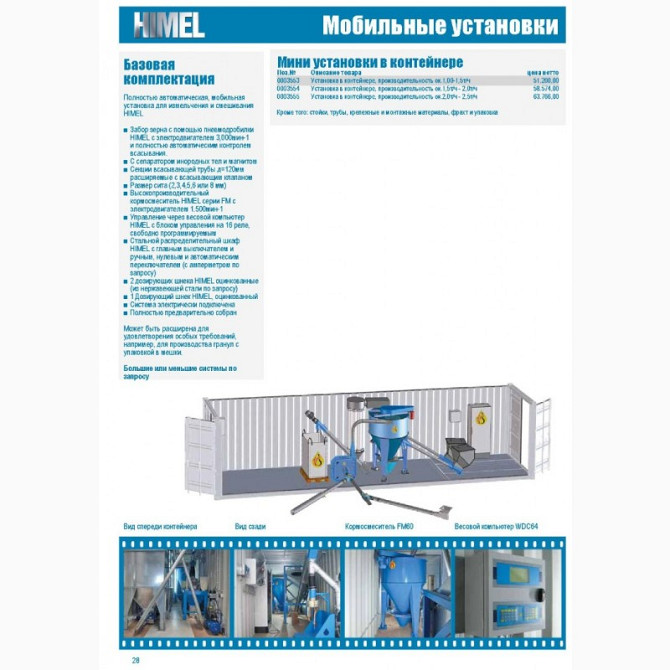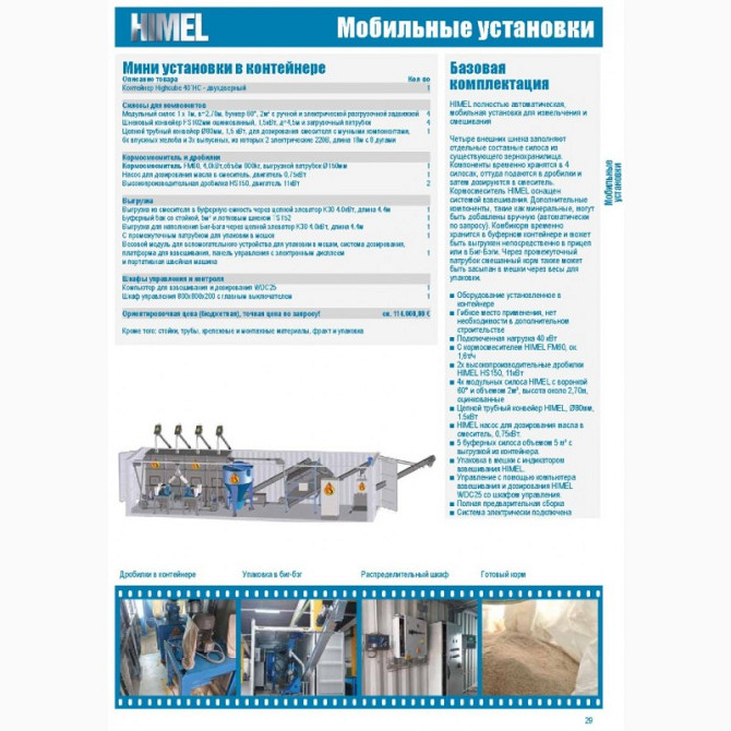 HIMEL пропонує зразки міні-комбікормових заводів "під ключ". Наше обладнання можна інтегрувати у вже існуючі системи у вашому господарстві, а також є можливість розширення механізмів. Ми забезпечуємо доставку до будь-якої точки України, монтаж заводів на місці та сервісне обслуговування в Україні. В...