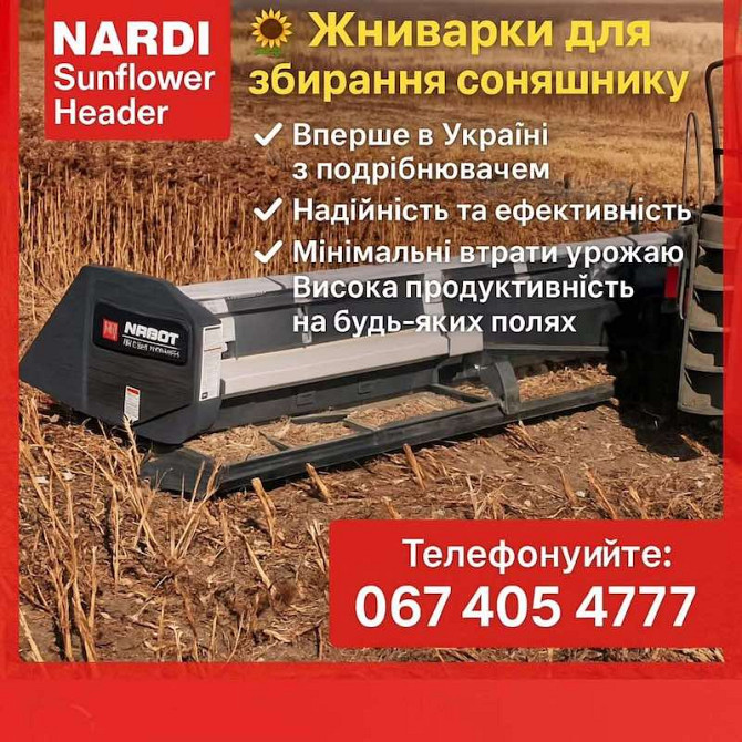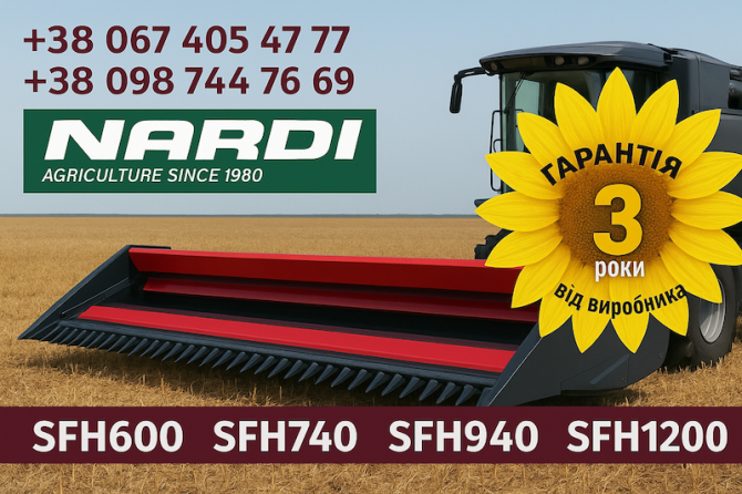 Пропонуємо сучасні соняшникові жниварки NARDI з подрібнювачем – новинка на ринку України! Надійна конструкція. Висока ефективність при збиранні. Мінімальні втрати врожаю. Підходять для роботи на будь-яких полях. В наявності, доставка по Україні. Телефонуйте для уточнення деталей. +38067405477...